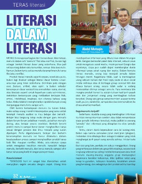 esai, feature, artikel, atau opini. Ia bukan sekadar dibaca banyak orang, secara tidak sadar ia sedang