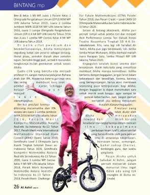 2016, Juara 2 Lompa Olimpiade Pengetahuan               Selain  di  bidang  akademik,  Alisha  pun